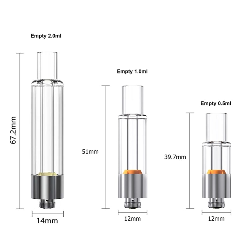 Besides, the structure design makes it so easy to fill oil from the bottom,  once you fill, you just need to screw the bottom base to seal the full cartridge and lock. With this screw & lock design, you won’t get any leaking issues at all. This Cartridge also uses revolutionary ceramic heating elements that can produce the purest taste and smooth throat hits with plenty of vapor. As a result, it would be the best seller in future cartridges made with full glass material, bringing you the greatest vaping experience and effects of any cannabis oil like D10/D8/THC/THCO/HHC/CBD.